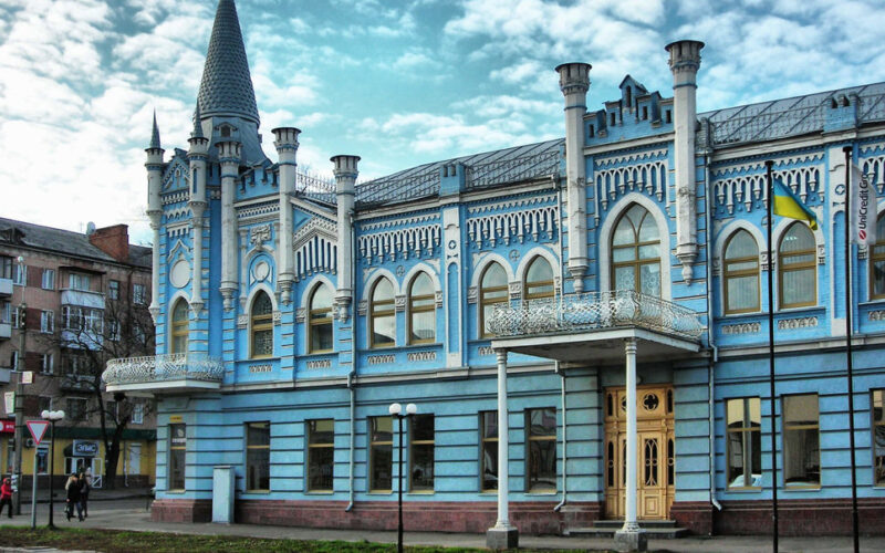 Історично будівля була зведена як готель «Слов’янський» наприкінці XIX століття. Згодом вона отримала народну назву «Блакитний палац» через характерний колір фасаду. Сьогодні будівля відреставрована та зберігає статус архітектурної пам’ятки.